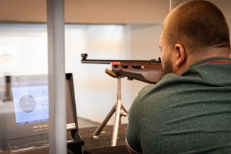 Det kræver en rolig vejrtrækning og fokus at ramme plet. Det er der rum til, når der skydes i Maribo.